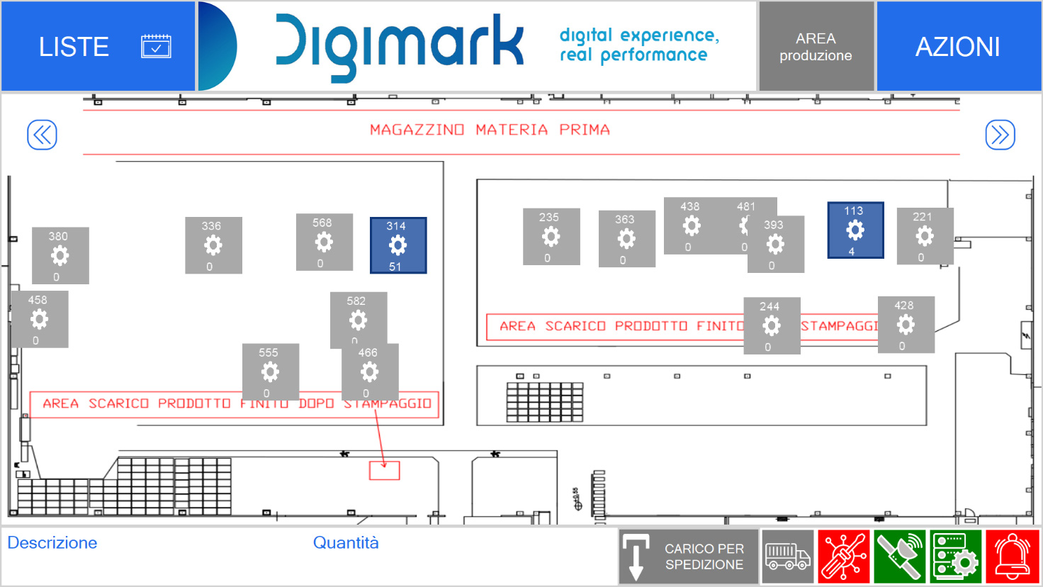 Furthermore, to facilitate the work of the forklift drivers, a system of notifications has been created that warns them whenever one or more crates are ready to be collected in the production department, also providing on the screen of the tablet they are supplied with information about the machine from which to pick up the goods, as well as its position within the production area.