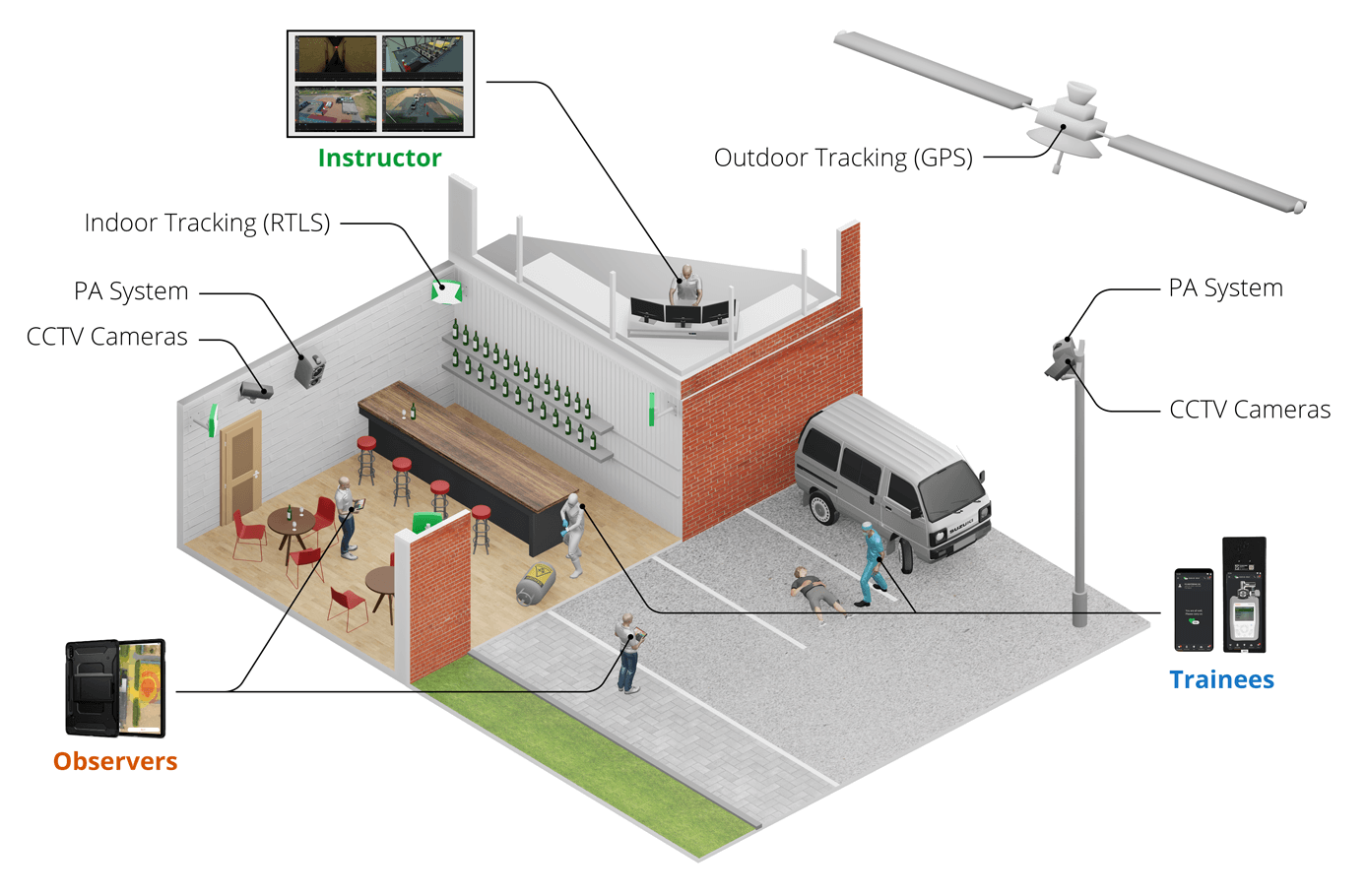 The pain of boring and unrealistic training does more damage than good. Training without instant and true interaction lacks the engagement of the trainee and its unrealistic settings make the gained skillset useless in the real world. But help is at hand. With the latest in indoor tracking technology, you can enable first responders to experience training with the location data necessary to make the exercise as realistic as possible and add a gamification aspect to the training as well.