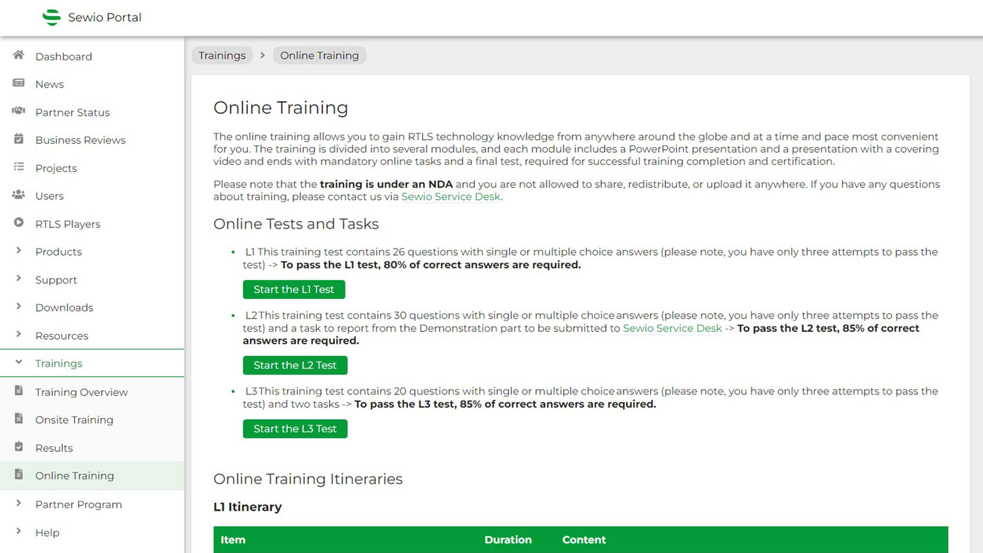 Gain a deeper level of UWB RTLS technology expertise by taking our series of free online RTLS training courses. Through Partner Portal, an unlimited number of your teammates can access the most comprehensive training program and certification in the RTLS industry.