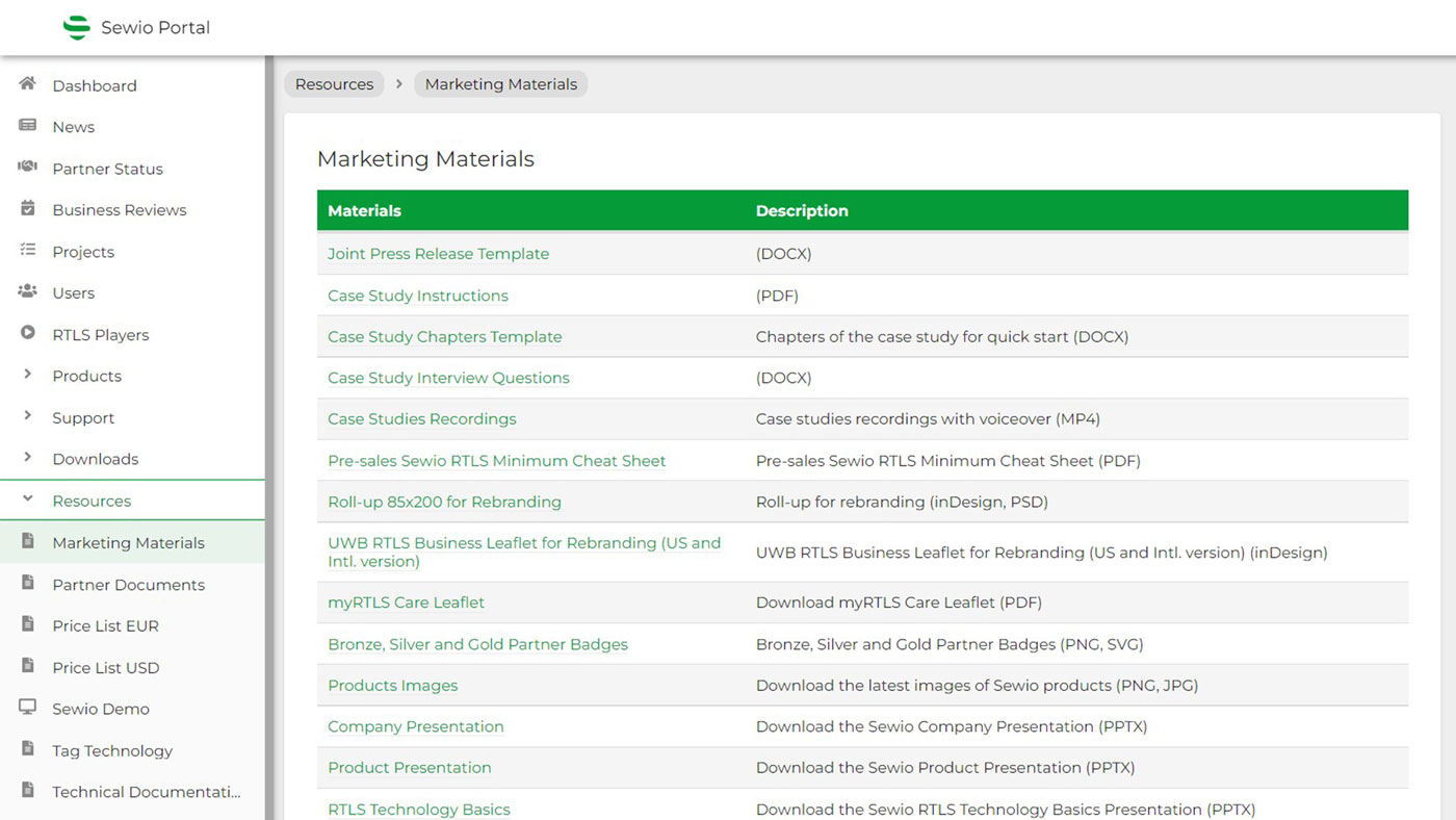Boost your own promotional assets by leveraging Sewio’s marketing materials. These include press release templates, case study guidelines, animations explaining different use cases, and much more. Speed up your events preparation by accessing ready-to-rebrand leaflets and rollup banners.