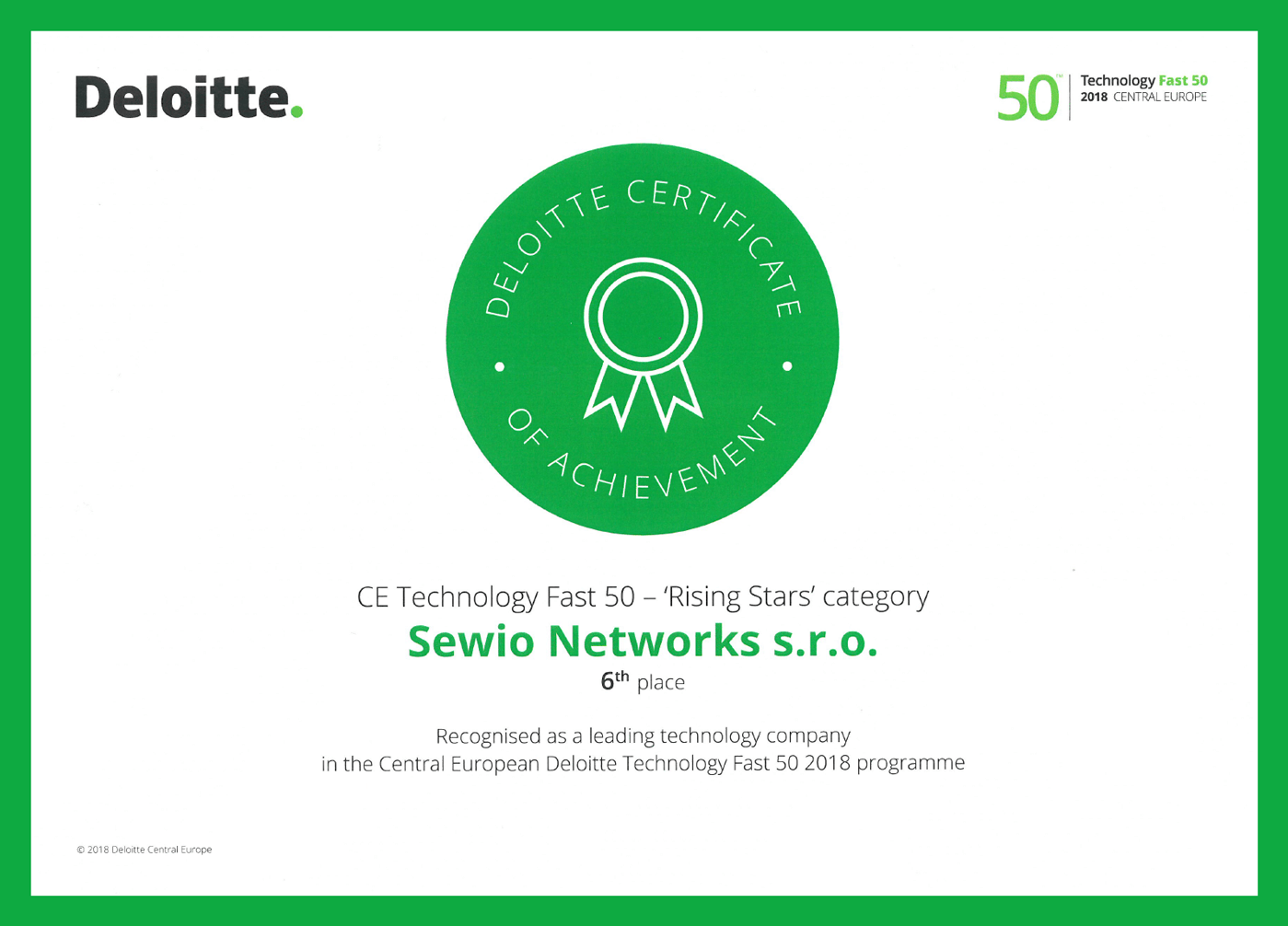 For more details, please see the results of Deloitte CE Fast 50 for 2018. Read the official Sewio press release “Sewio Networks Named Fast 50 Rising Star by Deloitte”.