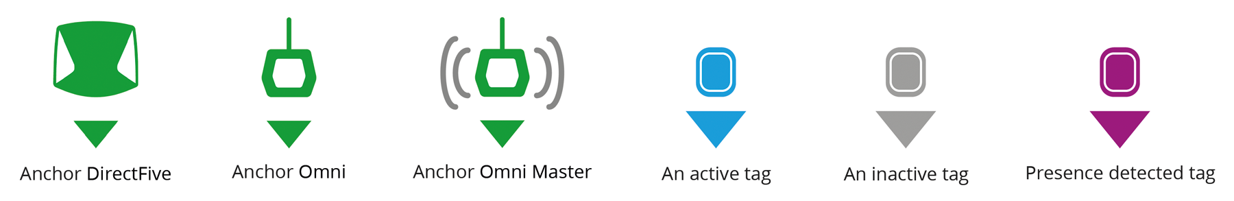 With version 3.0, anchor types and tag statuses can now be distinguished by their respective icons. If you need to review your installation, you can quickly identify the type of anchor used and the status of a tag at a particular location to expedite troubleshooting and diagnostics.
